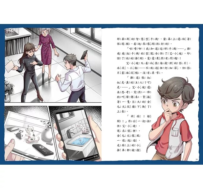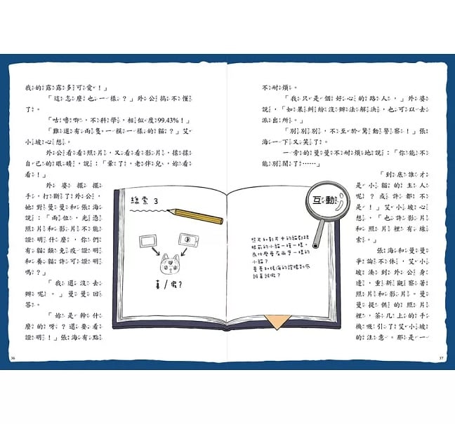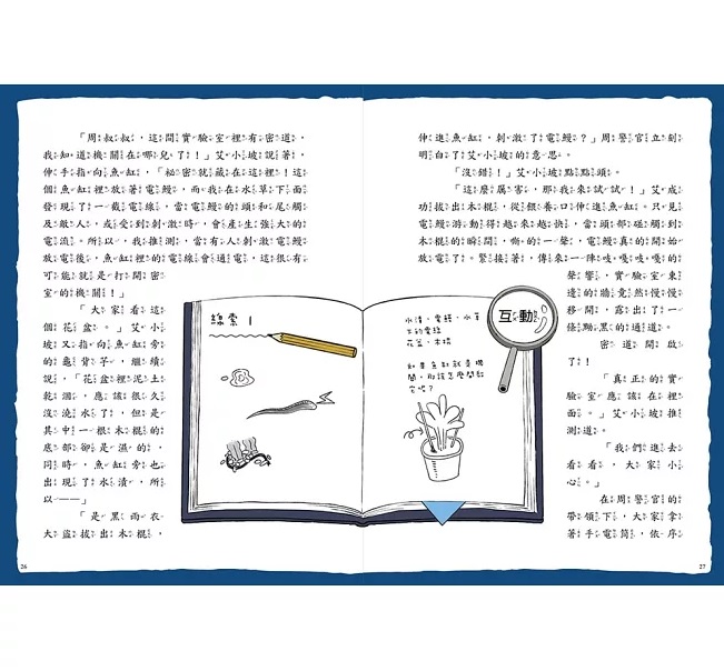 ★★★超級上癮~讀者熱烈敲碗四部曲!★★★ -年度超人氣TOP推理書- ★小學生人手一本‧爸媽指定必買!★ 系列書榮獲★台北深耕閱讀獎★中小學生讀物選介獎 ‧讓孩子看了根本停不下來的推理故事‧ -燒腦+科學推理+偵探故事- ----- 破案能力大升級的9歲神探艾小坡, 改造飛船重返地球的外星人雞飛飛, 兩人穿越星際,再次結成口袋神探聯盟── 一同用科學知識破解生活中的謎案! 表演者在湖中離奇失蹤,是湖神顯靈? 複製貓的身上,又藏有什麼科學陰謀? 隨著黑雨衣大盜的身世之謎被解開,更引發一連串危機……    有案子就交給神探艾小坡 ! 趕快動腦破案‧用科學知識找到真相!              ◎引導閱讀    《口袋神探》這一系列,是專為小學生量身打造創作的推理故事,藉由書中生活化的情節,和知識單元的引導設計,能將孩子輕易帶進主角艾小坡的生活中,從而像小偵探一樣進入每一個案發現場,從每一幅特別設計的插畫中,尋找案情的蛛絲馬跡。 ‧圖文並茂,讓孩子身歷其境  故事裡的疑點和線索,以圖文並茂的形式依序展現在孩子面前時,小偵探的思考過程便也跟著呈現,沒有什麼比這樣的方式更直接,更能讓孩子感知到什麼是科學思維、邏輯思維。 ‧故事主軸緊扣五大思維能力-觀察力+判斷力+推理力+邏輯力+想像力    ‧不僅有推理,故事謎案背後進一步揭露科學原理 「乾洗手液也能燃燒?」 「有些東西是『食物』也是『毒藥』?」 這些既是科學知識,同時也是破案的關鍵。《口袋神探》中的每一個故事,最後揭開謎底、發現真相的關鍵都是一個科學知識點。每集故事後面,都有「科學偵探大揭秘」單元,為孩子們詳細解讀主角破案時運用到的科學知識。 比讓孩子獲取科學知識更重要的,是培養其科學思維,這種思維背後的邏輯思考能力,不僅是學習數理化的基礎,更能運用到任何一個領域,幫助孩子在生活中有效地解決各項問題。