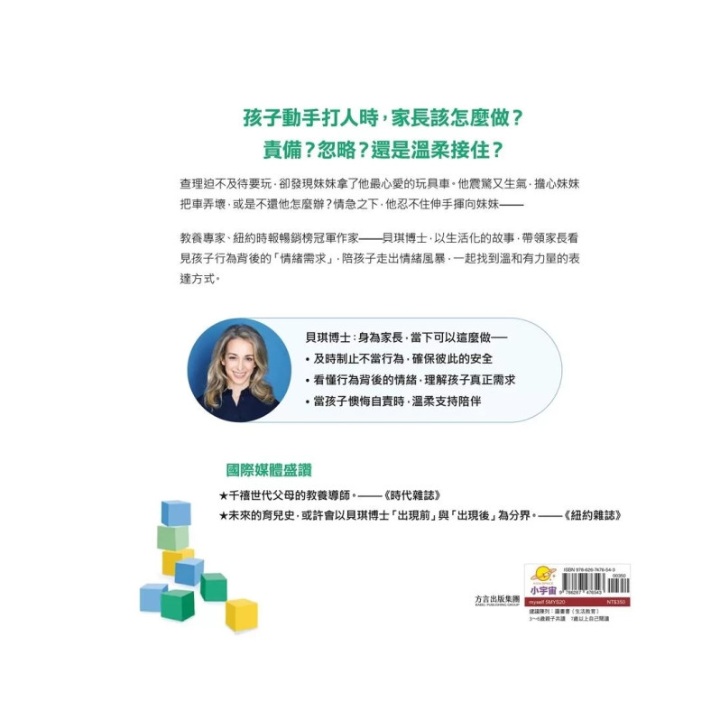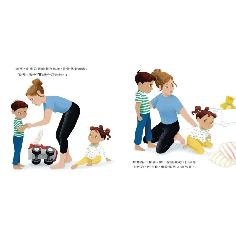 ★《時代》讚譽的教養導師,貝琪博士情緒繪本代表作! ★ 橫掃《亞馬遜》《紐約時報》《今日美國》暢銷榜 TOP 1! ★《CBS Mornings》《Good Morning America》《TODAY》節目專題報導推薦! 孩子動手打人了,怎麼辦? 控制不住情緒,就是壞孩子嗎? 當查理發現妹妹琵雅正在玩他最心愛的玩具車時,情緒如海嘯般襲來……他還來不及思考,便為了搶回玩具車而揮手打了妹妹。這不是他真正想做的事——他只是,不知道怎麼表達自己的怒氣。 媽媽並沒有急著斥責查理,而是溫柔且堅定的同理他的情緒,同時安撫著琵雅。 情緒失控,就等於是壞孩子嗎? 這個故事讓我們看見,孩子的攻擊行為往往並非出於惡意,而是情緒難以負荷的求救訊號。事後,查理深陷自責,而媽媽用擁抱代替責備,陪伴他走過這場情緒風暴,讓他明白——「我不是壞孩子,我只是太難過了。」 透過這則溫暖又真實的故事,幫助孩子學會: ✔ 情緒可以被理解,行為不等於壞孩子 ✔ 學會正確表達情緒,而不是被情緒所控制 ✔ 從錯誤中建立連結,而非陷入自責和罪惡感 由臨床心理學家、三寶媽、暢銷書作家── 貝琪.甘迺迪 博士(Dr. Becky Kennedy) 親自創作,是最貼近真實育兒現場的情緒共讀繪本。 書末特別附上【親子教養指南】,提供具體話語與實用行動建議, 幫助父母在每一次情緒風暴中,成為孩子最穩定的依靠。 本書特色 ღ 圖文鮮明、情緒共感強烈 色彩明亮、筆觸細膩,孩子能輕鬆代入角色,身歷其境般的體會情緒起伏與轉折。 ღ 劇情貼近日常,孩子感同身受 以兄妹搶玩具的日常衝突為開場,帶出孩子常見的情緒困境,引發深刻共鳴,幫助孩子理解「被看見」的感受。 ღ 親子教養的溫柔示範 書中媽媽的回應溫柔且堅定,是陪伴孩子處理情緒的最佳範例;也讓大人重新思考「不以責罵,而是理解」的育兒方式。