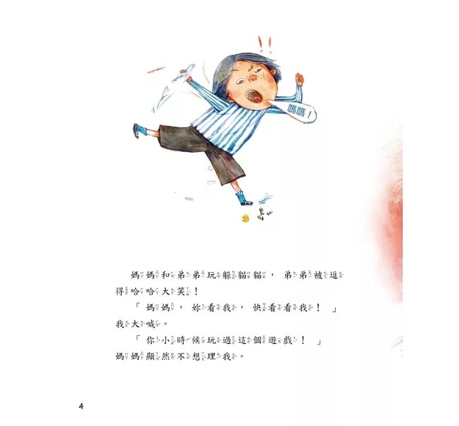 家裡有了弟弟之後,媽媽只講故事給弟弟聽,爸爸說我要照顧好弟弟,奶奶要我帶著弟弟玩,爺爺叫我把腳踏車讓給弟弟。 什麼都是弟弟、弟弟!他們說:「你是哥哥。」 我受不了了,要是媽媽沒生弟弟就好了,我不想當哥哥...... 哥哥也還是個孩子,也會嫉妒、厭煩、委屈,需要被看見、陪伴。 一直要他讓著弟妹,複雜的內心感受就被忽視了。