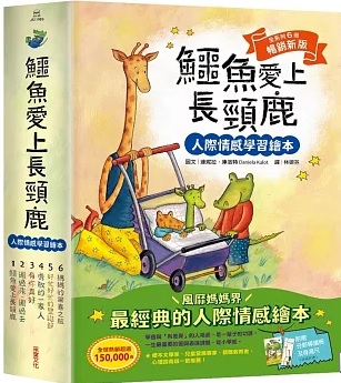 ★《鱷魚愛上長頸鹿》系列暢銷新版★ 全系列6冊 + 0-9歲分齡導讀手冊 ※附贈「鱷魚長頸身高尺」※ 學會與「有差異」的人相處,是一輩子的功課, 一生最重要的愛與表達課題,從小學起。 在真心接納之中,學會同理心與情感表達能力; 在找尋共處之道之中,學會解決問題的勇氣與創意; 在享受互補之中,發現相愛容易,相處也不難。 個子矮小的鱷魚先生,與身材高挑的長頸鹿小姐戀愛了! 他們是如何克服差異,勇於表達愛,並共組幸福家庭呢? 在生下了可愛的鱷魚妹和長頸弟之後, 這一個幸福又有趣的家庭又一起經歷了哪些冒險呢? 包含「人際情感」、「尊重多元」、「勇於表達」、「家庭儀式」等主題,每一個故事細節都能教導孩子學習積極勇敢, 學會尊重自己、欣賞他人的不同。 本套書共收錄六本: 《鱷魚愛上長頸鹿1:鱷魚愛上長頸鹿》 個子很小的鱷魚先生愛上了和他身高相差243公分的長頸鹿小姐, 他想向長頸鹿表達愛意,偏偏兩個人總是擦身而過, 鱷魚會怎麼發揮智慧吸引長頸鹿的注意呢? 《鱷魚愛上長頸鹿2:搬過來搬過去》 這對不可能的情侶從互不相識,到共組甜蜜的小家, 但是……一點都不甜蜜! 身高差距如此懸殊的他們真的有辦法一起生活嗎? 《鱷魚愛上長頸鹿3:有你真好》 鱷魚和長頸鹿這對夫妻出門時,卻受到了眾人的嘲笑, 像是看電影,也因為長頸鹿的脖子太長而被嘲諷所淹沒, 最後在一場火災救險中,他們如何急中生智,將大家救出火場呢? 《鱷魚愛上長頸鹿4:勇敢的一家人》 鱷魚和長頸鹿夫婦有了愛的結晶──鱷魚妹及長頸弟, 有一天,家裡的游泳池水管突然爆裂, 長頸鹿的脖子被繩子勒住,鱷魚被卡在排水孔了, 一家人要如何攜手度過這個難關呢? 《鱷魚愛上長頸鹿5:好忙好忙的聖誕節》 聖誕節就要到了! 鱷魚長頸鹿一家人忙著要過節,但卻狀況百出! 工作沒辦法好好完成,這樣還來得及過聖誕節嗎? 《鱷魚愛上長頸鹿6:媽媽的驚喜之旅》 突然間,大家發現家門縫下出現一條紅色的神祕繩子, 這條繩子會延伸到哪裡呢? 鱷魚與長頸鹿一家人都興奮極了,並決定要跟著這條紅繩子, 展開一場驚喜的大冒險。 單冊特別收錄--「認知表達訓練學習單」 1.針對六冊內容分別強調類型,如:認知學習、人際互動、生活自理、情緒管理等,讓家長在陪伴孩子閱讀的過程中,親子互動更加聚焦。 2.從書中回顧各種故事情節,讓孩子鍛鍊記憶力、創意思考力,進而開發問題解決能力,成為小小偵探家。 套書加贈--「0~9歲分齡導讀學習手冊」與「鱷魚長頸鹿身高尺」(52x150cm) 1、針對各年齡層0~3歲、3~5歲、4~9歲孩童規劃出9組延伸遊戲,如:畫出鱷魚的笑容(觀察肢體動作與臉部表情)、找一找鱷魚和長頸鹿的家有何不同(藉由相反概念比較,建立使用形容詞基礎)等,書中處處都是玩創意的趣味點子! 2、集結知名藝人、繪本文學專家、親職心理專家、親子部落客等26位名人導讀分享,帶領孩子思考「家庭、智慧、尊重、體諒」的真正意涵,藉由此套繪本和孩子談論這個重要卻不容易談的議題。